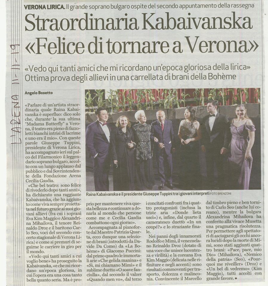 Nata nel 2011 dalla fusione di due grandi Associazioni musicali, il Circolo Giuseppe Verdi e il Circolo Giovanni Zanatello, l'Associazione Musicale Verona Lirica ha lo scopo di diffondere, di approfondire la conoscenza e la cultura della Musica. Consolidare ed elevare il gusto e la passione per la Musica Lirica. Coinvolgere sempre più giovani per una completa formazione umana. L'associazione non ha fini di lucro e ha carattere assolutamente apartitico.